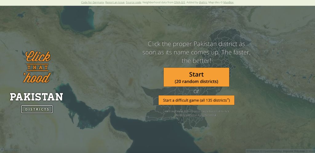 During the summit, a mini-hackathon took place, and I saw it as an opportunity to work on something new. The room was buzzing with activity, with some people building Legos and others making art. But I was drawn to the table with civic hackers, where I met Andrew Hyder, Code for America’s developer evangelist at the time. Andrew welcomed me with a big smile and showed me some projects in the Code for America GitHub organization. One project caught my eye: Click-That-Hood, a geo-data game where you had to point to the right neighborhood quickly. However, there was no Pakistan on the list of countries.