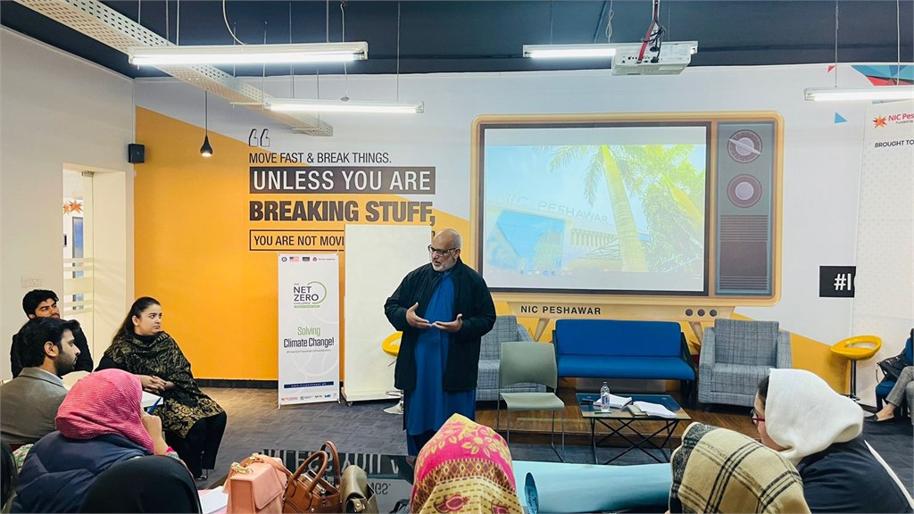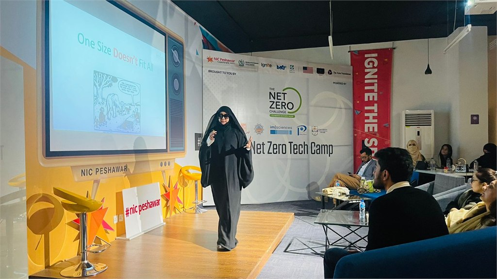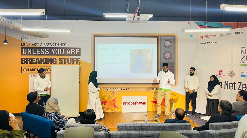 Four teams of students from seven different universities in Khyber Pakhtunkhwa (KP) gathered at NIC Peshawar to work on projects aiming to achieve net zero emissions. An interesting observation regarding gender disparity was that out of the twenty participants, twelve were women, representing a clear majority—a surprising occurrence for an event in KP, one of Pakistan’s more conservative provinces.